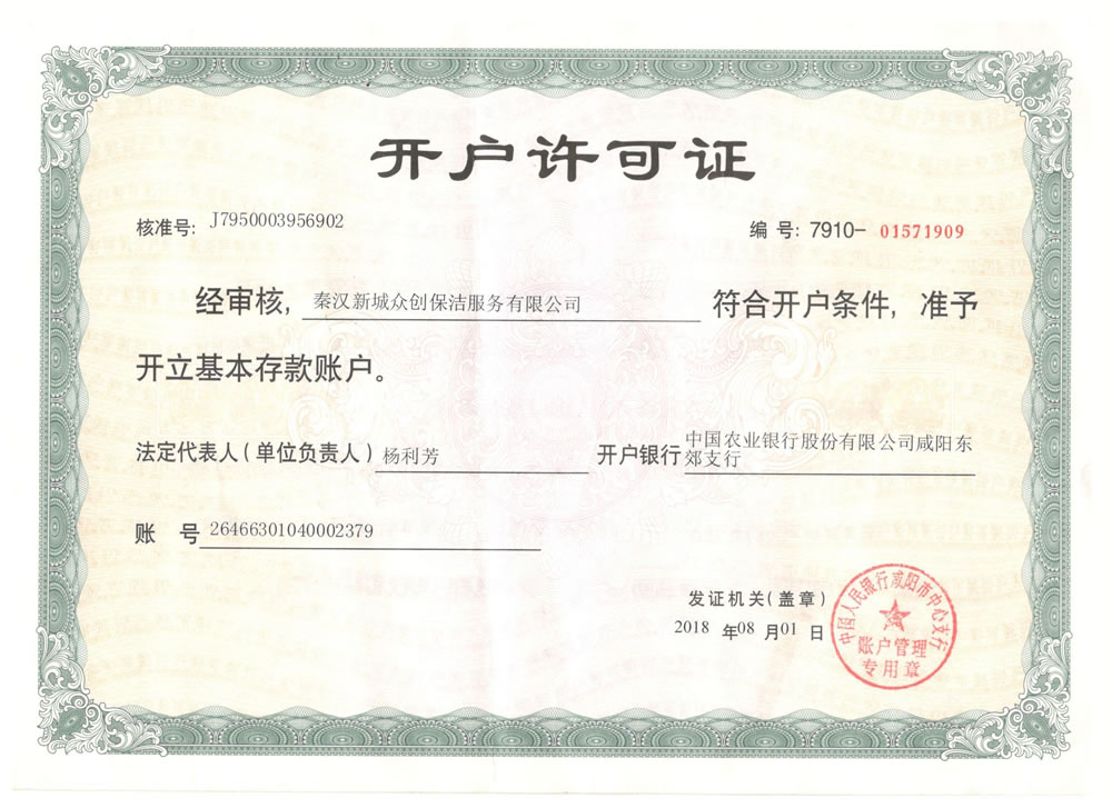 銀行賬戶開戶許可證